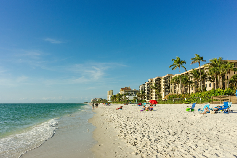 Naples is known for high-end shopping and golf courses. The Naples Pier is a popular fishing and dolphin-spotting destination, flanked by miles of beaches with calm waters and fine white “sugar” sand, including those at Clam Pass Park and Delnor-Wiggins Pass State Park. Third Street and 5th Avenue are bustling with shops, restaurants, and other exciting venues.
